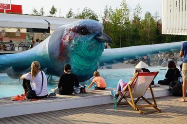 Keywords: bird recovery expo fountain big bird swimming pool czech republic exhibit present milan italy blue fig statue art chill out fly swim