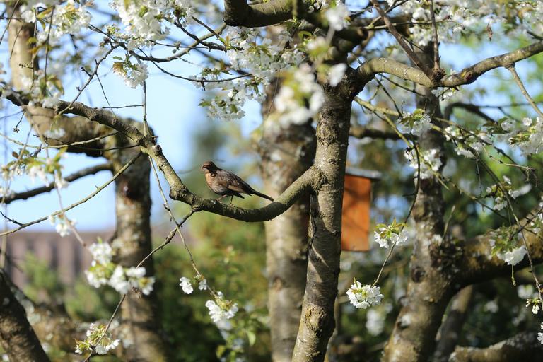 Keywords: bird road tree bill worm songbird nature blackbird spring cherry flowers bird branch tree bill worm songbird nature blackbird spring cherry flowers