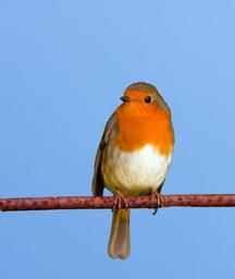 Keywords: bird robin cute branch close-up blue sky background photo image animal beautiful perched perching