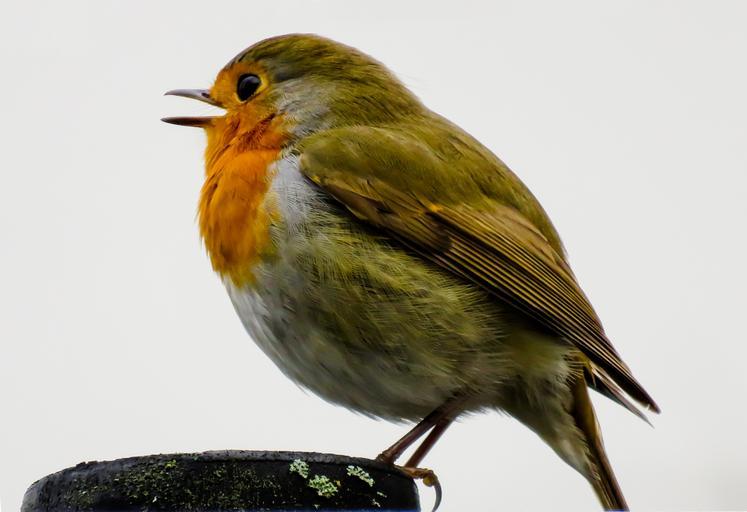 Keywords: bird robin songbird close small nature fence garden bird beautiful birdsong foraging curiosity red orange