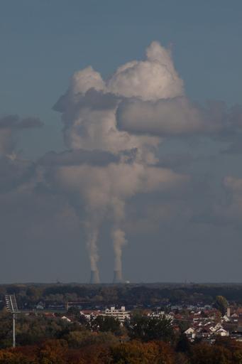 Keywords: bird's eye view building architecture ulm panoramic view from the cathedral after east outlook city view homes roofs nuclear power plant gundremmingen cooling towers steam water vapor clouds cloud formation
