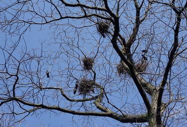 Keywords: bird's nest birds rooks tree branches sky spring park nature