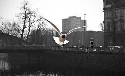 Keywords: bird the seagull contrast sky building