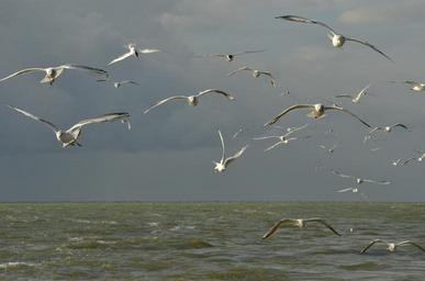 Keywords: bird seagull white water air clouds dark threat storm fly