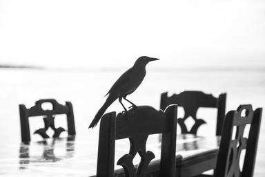 Keywords: bird shadow blackbird curious stool chair table shilouete