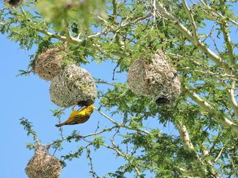 Keywords: bird sparrow nest tree thorns green branches nesting nature animal wildlife blue yellow home natural life fauna africa wild species national park kruger wings flying fly babies grass reeds straw plant herbivore outdoor habitat safari botswana flock zimbabwe conservation bush savannah