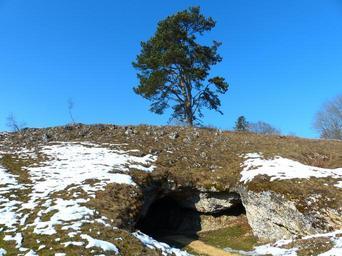 Keywords: bird stove cave cave cave entrance niederstotzingen lonetal karst cave place of discovery upper paleolithic swabian alb germany hill mountain excavations