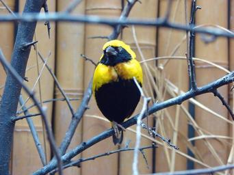 Keywords: bird yellow black songbird wildlife photography bill close