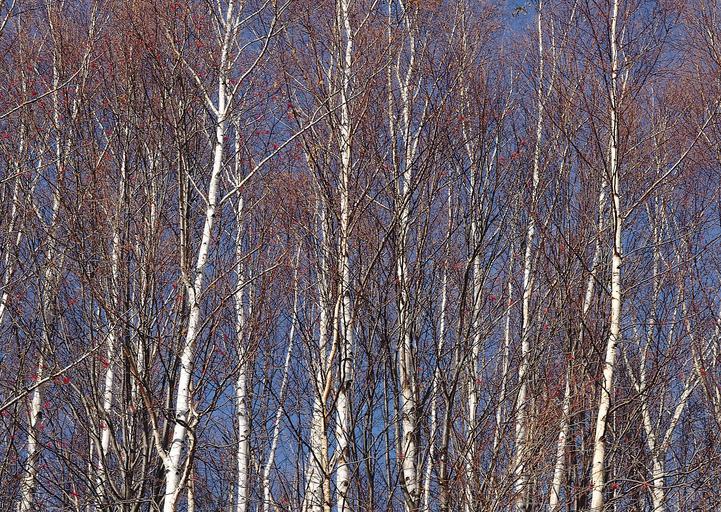 Keywords: trees forest winter snow slim day sunny grove rangy background pristine birch limpid white copse blue transparent crystal trunks sky fresh nature slender landscape air