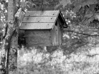 Keywords: birdhouse nesting bird wood outdoors black and white