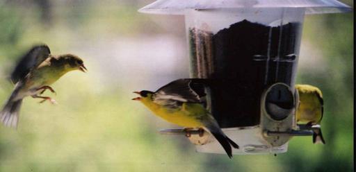 Keywords: Birds0010.jpg American Goldfinch landing Own 2007-07-04 Lsi john Spinus tristis Bird feeders