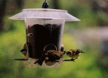 Keywords: Birds0012.jpg American Goldfinch facing off Own 2007-07-04 Lsi john Spinus tristis