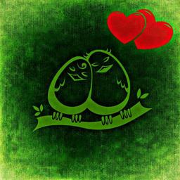 Keywords: birds abstract pair lovers couple sweet cute funny green canvas fabric structure heart love valentine's day