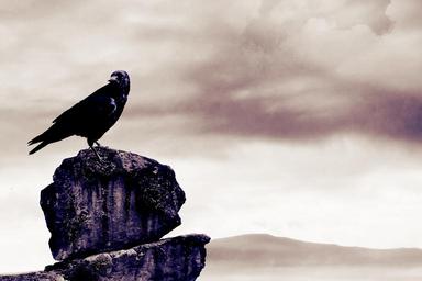 Keywords: birds gray nature rock rough sad hunter look crow black fur alone wildlife animal