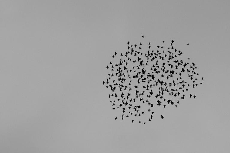 Keywords: birds herd sky group wings flight nature animals wild birds airfare fly skies