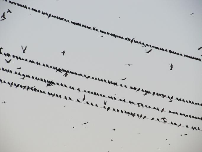 Keywords: birds hitchcock flock crows wires swarm flying preponderance