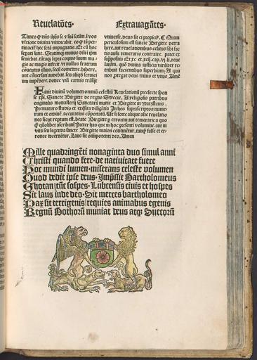 | Keywords: Birgitta 1492 691.jpg The last page of cite book Suecica Birgitta Bridget of Sweden en Bridget of Sweden Petrus Magister o P ; Matthias Lincopiensis Revelationes caelestes mit Vita abbreviata sanctae Birgittae Inhaltsverzeichnis Tabula und Bittgebet zur hl Birgitta Davor Turrecremata Johannes de Defensorium super Revelationes caelestes sanctae Birgittae <Ausz > Mit der Kanonisationsbulle Ab origine mundi Rom 7 10 1391 von Papst Bonifatius IX und der Bestätigung Excellentum principum Florenz 1 7 1419 von Papst Martin V Celestial revelations with a brief life of Saint Bridget table of contents picture and petitionary prayer for St Bridget Formerly Turrecremata Johannes de Defence of the celestial revelations of Saint Bridget extracts With the canonization bull From the beginning of the world Rome 7 October 1391 by w Pope Boniface IX and the confirmation Leaders of excellence Florence 1 July 1419 by Pope Martin V Lübeck Bartholomäus Ghotan for the Abbey of Our Lady and of Saint Bridget in Vadstena 1492 239380301 BSB-Ink B-530 GW 4391 The page features a colophon and printer's mark http //daten digitale-sammlungen de/~db/0002/bsb00025551/images/bsb00025551_00691 jpg Artist author ; printed by Bartholomäus Ghotan 1492 PD-old-100 1492 books Colophons from Germany Revelationes caelestes 1492 Printer's marks |