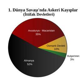 | Keywords: Birinci Dünya Savaşında İttifak devlerinin kayıpları.svg Piechart showing percentage of military deaths during World War I for the Central Powers Self-made with figures from World War I Casualties<br> Originally created by User Dna-Dennis and released into the public domain <br> User Wereon created the vectorization svg of the original png-version <br> User Dna-Dennis updated it October 16 2007 changing colors and adding shades to give the chart a more subtle feel than the png-version <br> 2007-10-16 User Dna-Dennis User Wereon Turkish language edit by Muratsahan Public domain Original png-version If you wish to contact me please leave a message on my talk page Casualty statistics of World War I Diagrams in Turkish |