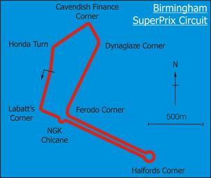 Keywords: Birmingham Superprix.svg Diagram of the circuit used for the Birmingham SuperPrix meetings 1986-1990 Birningham England Own 2006-11-20 John Chapman Maps of racing circuits