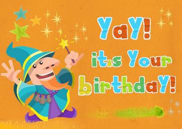 Keywords: birthday greeting card kids child magician colorful magic fantasy cute children boy girl young joy boy and girl little boy celebration gift friendship little fun