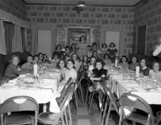 | Keywords: library of virginia libraryofvirginia richmond va richmondva children girls restaurant 50s adolph b. rice studio adolphbricestudio 1953 blackandwhite room monochrome dining room dining indoor auditorium hall table dinner table dining table black and white Title: Birthday party Creator: Adolph B. Rice Studio Date: December 11, 1953 Identifier: Rice Collection 214B Format: 1 negative, safety film, 4 x 5 in. Rights Info: No known restrictions on publication. Repository: Library of Virginia, Prints and Photographs, 800 E. Broad St., Richmond, VA, 23219, USA, digitool1.lva.lib.va.us:8881/R Title: Birthday party Creator: Adolph B. Rice Studio Date: December 11, 1953 Identifier: Rice Collection 214B Format: 1 negative, safety film, 4 x 5 in. Rights Info: No known restrictions on publication. Repository: Library of Virginia, Prints and Photographs, 800 E. Broad St., Richmond, VA, 23219, USA, digitool1.lva.lib.va.us:8881/R |