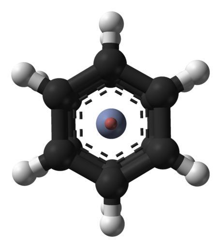 | Keywords: Bis(benzene)chromium-from-xtal-2006-3D-balls-B.png Ball-and-stick model of the bis benzene chromium molecule C<sub>6</sub>H<sub>6</sub> <sub>2</sub>Cr i e C<sub>12</sub>H<sub>12</sub>Cr from the crystal structure Colour code Carbon C black Hydrogen H white Chromium Cr grey-blue Crystal structure by X-ray diffraction from http //dx doi org/10 1021/jp057516v J Phys Chem A 2006 110 6545 “6551 Model constructed in http //www crystalmaker com/ CrystalMaker 8 1 Image generated in http //accelrys com/products/discovery-studio/visualization/discovery-studio-visualizer html Accelrys DS Visualizer Own 2009-07-06 Ben Mills Benjah-bmm27 Images by Ben Mills Ball-and-stick models Crystal structures of bis benzene chromium |