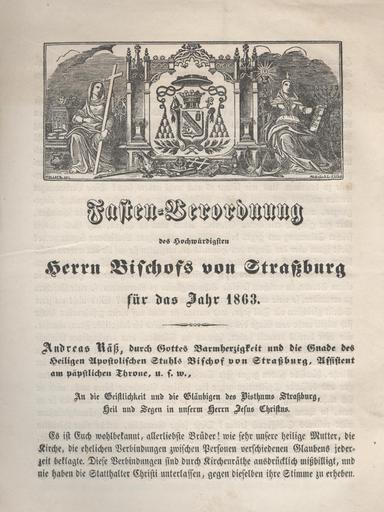 | Keywords: Bischof Andreas Räss, HirtenbrieflJS.jpg  de Bischof Andreas Räß Straßburg Fastenhirtenbrief 1863 own Joachim Specht 2009 eigener Scan vom eigenen alten Hirtenbrief von 1863 André Raess Coats of arms of bishops of the Roman Catholic Archdiocese of Strasbourg Pastoral letter |