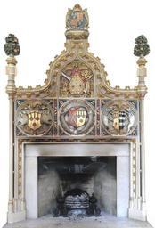 | Keywords: BishopPeterCourtenay MantelpieceExeterPalace.JPG Bishop Courtenay Mantelpiece erected by Bishop Peter Courtenay d 1492 in the Bishop's Palace Exeter at some time between 1485 and 1492 during the reign of King Henry VII 1485-1509 as indicated by the royal herldry and before the Bishop's death The papers in the grate were burnt on departure from office on 30 June 2013 by Bishop Michael Langrish information received from the Bishop's steward who was somewhat annoyed as he had just given it a final clean in anticipation of his master's final departure A 19th century copy with updated arms exists in the Dining Hall of Powderham Castle Devon and another at Kentwell Hall in Suffolk Top royal arms of King Henry VII; below which is is shown the arms of the See of Exeter; bottom row from left Left Arms of Dr Peter Courtenay d 1492 Bishop of Exeter Winchester with supporters the Bohun swans each collared with a crown and chained or Motto beneath Arma Petri Exon iensis Epi scopi The arms of Peter Bishop of Exeter The bishop's great-great-grandmother was Margaret de Bohun d 1390 the heiress of Powderham daughter of Humphrey de Bohun Earl of Hereford Middle Arms of See of Exeter impaling arms of Dr Peter Courtenay d 1492 Bishop of Exeter Winchester the shield surrounded by three dolphins embowed the heraldic device of the Courtenay family Right Arms of Courtenay of Powderham impaling Hungerford arms of the bishop's father and mother Supporters two Courtenay boars each charged with a label of 3 points each point charged with 3 roundels On a scroll above Honor deo et regi honour to God and the king ; on a scroll below Arma p at rib us et matris The arms of his fore fathers and mother In the 4 spandrels are the heraldic badges of the Hungerford family a wheatsheaf and 3 conjoined sickles The left border contains 3 tau crosses from each of which hang a bell symbols of St Anthony the Great of Egypt in 1470 Courtenay was appointed Master of St Anthony's Hospital in London Top Coat of arms of King Henry VII 1485-1509 with Tudor roses and Portcullis below emblems of the first Tudor monarch See Rev George Oliver Lives of the Bishops of Exeter and a History of the Cathedral Exeter 1861 pp 255-257 In 1883 no traces of colouring survived thus the present colourings are modern See Maria Halliday A Delineation of the Courtenay Mantelpiece in the Episcopal Palace at Exeter by Roscoe Gibbs Torquay 1884 own photo 2013 Lobsterthermidor <span class signature-talk >talk</span> 14 23 8 October 2013 UTC Also uploaded to Flickr by author under another pseudonym Bishop Courtenay's Mantelpiece Exeter Palace Swans in supporters Coats of arms of See of Winchester Courtenay arms Hungerford arms Bohun swan Coats of arms of King Henry VII of England |
