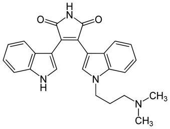 Keywords: Bisindolylmaleimide I.svg en bisindolylmaleimide I; GF 109203X de Bisindolylmaleimid I Own Yikrazuul 9 1 09 Chemotherapeutic agents Tertiary amines Bisindolylmaleimides