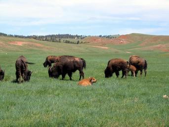 Keywords: nature peaceful environment wildlife bison wild herd animal rain outdoor calf wet megafauna baby buffalo