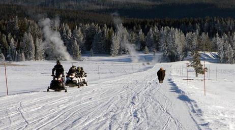 | Keywords: yellowstone yellowstone national park yellowstonenationalpark wildlife sport snow outdoor Bison and snowmobilers on road at Fountain Flats; Diane Renkin; January 2015; Catalog #20405d; Original #IMG_7446 Bison and snowmobilers on road at Fountain Flats; Diane Renkin; January 2015; Catalog #20405d; Original #IMG_7446 |