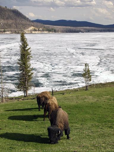 Keywords: bison herd usa grazing buffalo canadian mammal mountains canada field grass summer outside portrait horns wild eating animal american wildlife