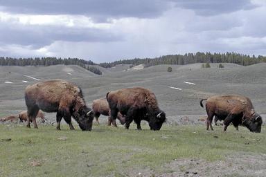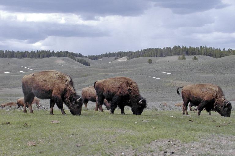 Keywords: bisons herd wildlife wild cattle bovine mammal national park american field prairie grazing grass grassland landscape nature animals