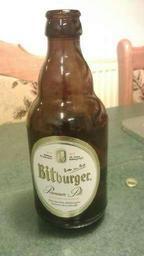 Keywords: Bitburger Stubbi.jpg en Bitburger Stubby de Bitburger Stubbi own Nasobema lyricum 2014-01-19 Cc-zero Steinie beer bottles