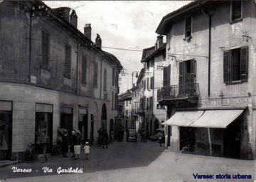Keywords: Via Garibaldi negli anni '60. La cortina di edifici sulla sinistra non è più esistente. varese biumoinferiore