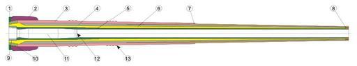 Keywords: BL 15 inch Mk I naval gun in section.svg BL 15 inch Mk I naval gun in section 1 - breech frame; 2 - breech ring; 3 - jacket; 4 - wire; 5 - inner A tube; 6 - A tube; 7 - B tube; 8 - stop ring; 9 - breech bush; 10 - shrunk collar; 11 - chamber; 12 - start of rifling; 13 - collars for fitting in cradle ru Раз ез б итанского 381 мм мо ского о удия а к 1 1 - амка затво а; 2 - казённик; 3 - кожух ствола; 4 - п оволочная намотка; 5 - внут енняя т уба A; 6 - т уба A; 7 - внешняя т уба B; 8 - стопо ное кольцо; 9 - по шневое гнездо; 10 - муфта; 11 - за ядная камо а; 12 - начало на езки; 13 - кольцевые выступы для соединения с салазками станка 381mm kanón BL Mk I v řezu 1 - rám závěru; 2 - prstenec závěru; 3 - plášť; 4 - drát; 5 - vývrt hlavně; 6 - válec A; 7 - válec B; 8 - dorazový kroužek; 9 - pouzdro závěru; 10 - spoj; 11 - nábojová komora; 12 - začátek vývrtu; 13 - prstence pro uchycení v lafetě Own sas1975kr 2010-03-27 BL 15 inch Mk I naval gun Gun barrels BL 15 inch Mk I