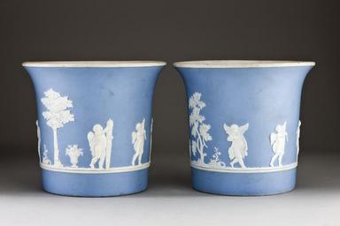 | Keywords: Blå blomkrukor i porslin från 1800-talets början - Hallwylska museet - 93877.tif LSH artwork sv Cylinderformiga med utsvängd brädd samt insänkt botten i bottnens centrum ett runt hål för vattenfloppet Utsidan i blått med fritt pressad pålagd reliefdekor i vitt; insida och botten i godsets gråvita färg Nedtill runtom gående stav omedelbart ovanför denna figurer och träd på slät mark Mellan två motsatta träd det ena med kal rak stam och tät hög krona det andra grenigt och buskliknande musicerande och dansande amoriner bevingade samt delvis skylda av mantlar original caption Blå blomkrukor i porslin från 1800-talets början <br/> Nyckelord Porslin 1800-tal Föremålsbild Krukor Blåa early other date century 19 size cm 18 5 20 6 HWY place of origin DE original filename hm_dig3936 17475 inventory number HWY XLV II D h a 01 93877 CC-BY-SA Jens Mohr Ceramic objects cachepots Cachepots ceramic 19th-century ceramics Cachepots Blue porcelain Pottery Stoneware Earthenware Jens Mohr Media contributed by LSH 2014-11 |