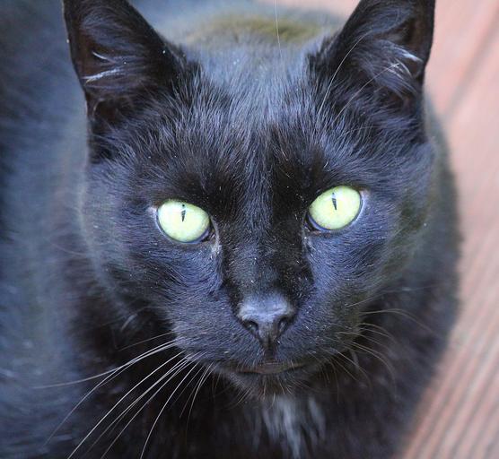 Keywords: black cat head face macro close up looking domestic pet mammal fur feline portrait animal symbol whiskers nose eyes