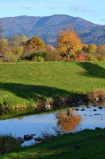 Keywords: black forest emmendingen elz kandel view forest distant view autumn nature mountains landscape mirroring tree river