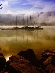 Keywords: black forest lake titisee germany atmosphere boats loneliness autumn autumn mood nature fog october mirroring