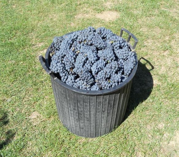 Keywords: black grapes vines merlot harvest