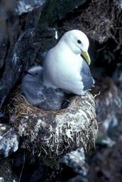 Keywords: black-legged kittiwake bird nature outside snow nest macro close-up wildlife