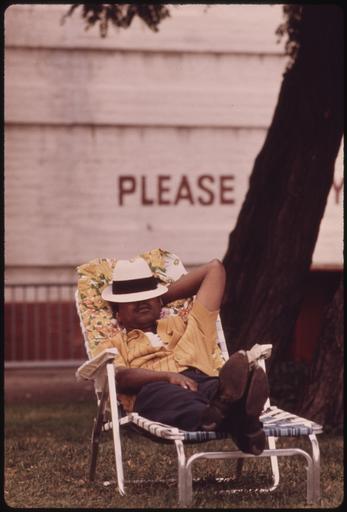 | Keywords: BLACK MAN ENJOYING A NAP ON A CHAISE LOUNGE ON CHICAGO'S SOUTH SIDE. FROM 1960 TO 1970 THE PERCENTAGE OF CHICAGO... - NARA - 556292.jpg Scope and content General notes 556292 Local identifier 412-DA-13840 Environmental Protection Agency 12/02/1970 - NARA-Author White John H 1945- Photographer 4002141 <br /> Chicago Cook county Illinois United States North and Central America inhabited place 4201352 41 85 -87 65 <br /> Still Picture Records Section Special Media Archives Services Division NWCS-S National Archives at College Park 8601 Adelphi Road College Park MD 20740-6001 08/1973 Record group Record Group 412 Records of the Environmental Protection Agency 1944 - 2006 Record group ARC 708 DOCUMERICA The Environmental Protection Agency's Program to Photographically Document Subjects of Environmental Concern compiled 1972 - 1977 Series ARC 542493 File unit File unit ARC Variant control numbers Agency-Assigned Identifier 231/40/013840<br /> NAIL Control Number NWDNS-412-DA-13840 Other versions <gallery> File BLACK_MAN_ENJOYING_A_NAP_ON_A_CHAISE_LOUNGE_ON_CHICAGO'S_SOUTH_SIDE _FROM_1960_TO_1970_THE_PERCENTAGE_OF_CHICAGO _-_NARA_-_556292 tif tif File BLACK_MAN_ENJOYING_A_NAP_ON_A_CHAISE_LOUNGE_ON_CHICAGO'S_SOUTH_SIDE _FROM_1960_TO_1970_THE_PERCENTAGE_OF_CHICAGO _-_NARA_-_556292 jpg jpg </gallery> NARA-cooperation PD-USGov John H White 1973 in Chicago Sleeping men Deckchairs |