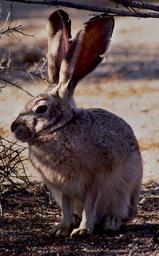 Keywords: black-tailed jackrabbit bunny outdoors wilderness wildlife american desert hare nature furry floppy portrait looking sitting shade ears