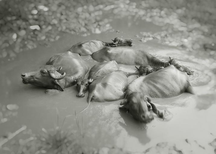 Keywords: black and white animal wet wildlife mud buffalo