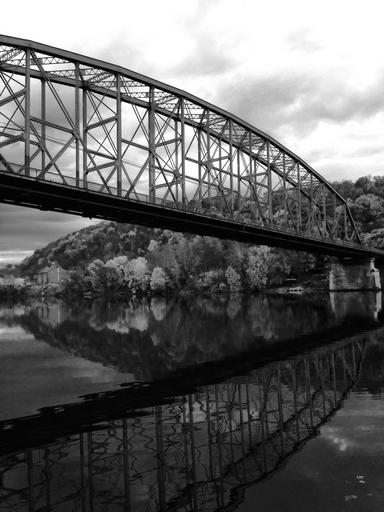 Keywords: black white bridge black and white architecture beautiful rural reflection water river clouds