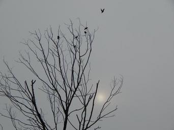 Keywords: black and white death tree birds sky