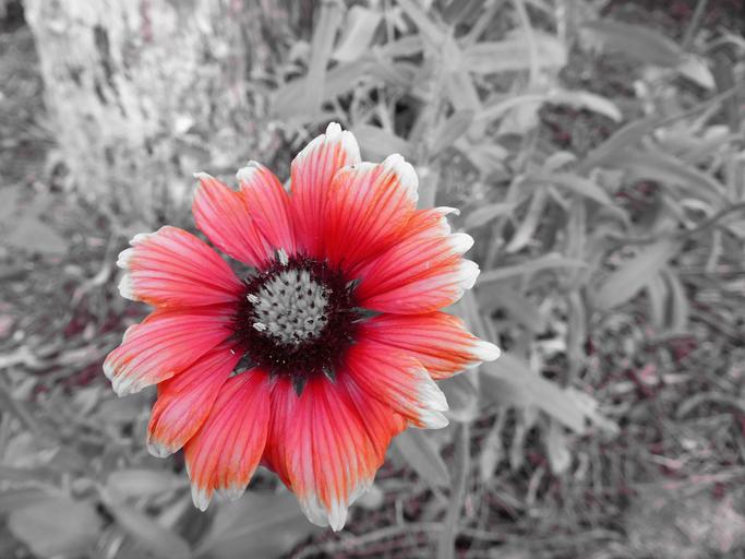Keywords: black and white flower red flower flora