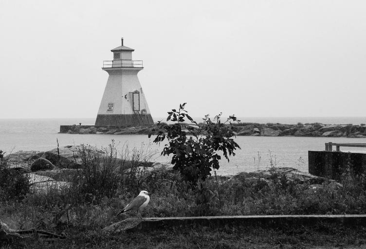 Keywords: black and white lighthouse lake maritime coastline