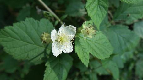 Keywords: blackberry blossom bloom forest fruit bush leaves white green